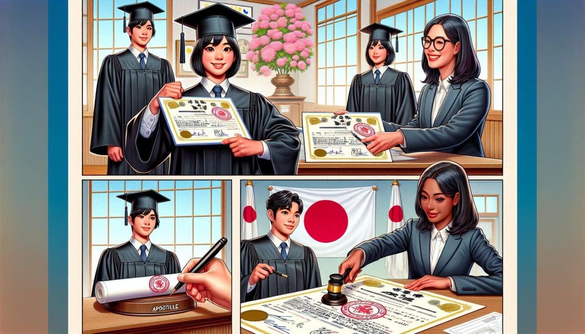 In Japan, they like their paperwork squeaky clean, especially when it comes to school diplomas. To use your diploma in the Land of the Rising Sun, you’ll need an apostille. It’s their way of making sure everything’s in order and above board.